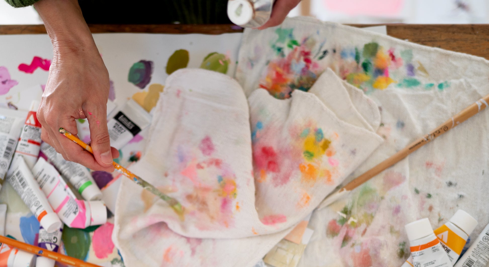 I use acrylic, acrylic-gouache, watercolor and ink.